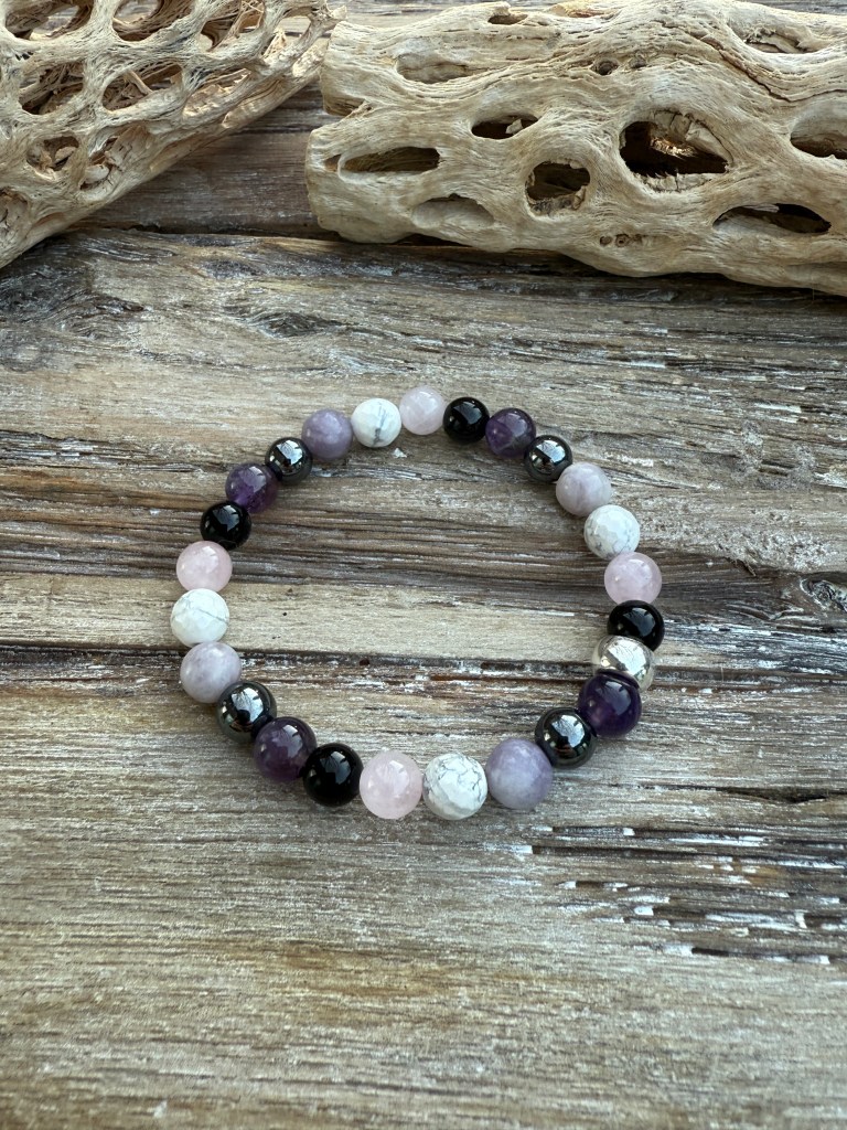 Pair lepidolite with amethyst if you struggle with nighttime anxiety. Wear it in the evening and create a wind down ritual before bed.