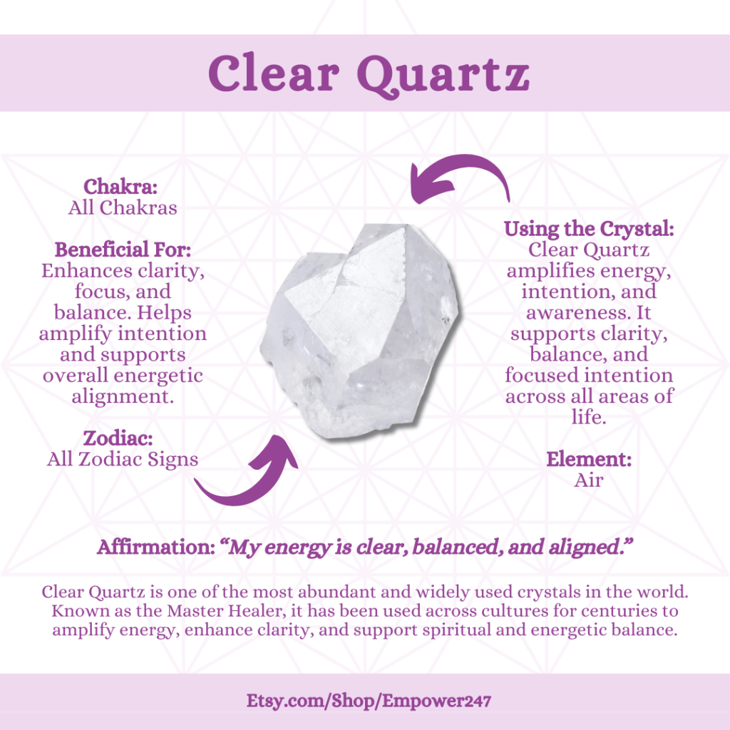 If you are building something new, setting big goals, or refining your vision, Clear Quartz amplifies your energy and keeps you aligned.