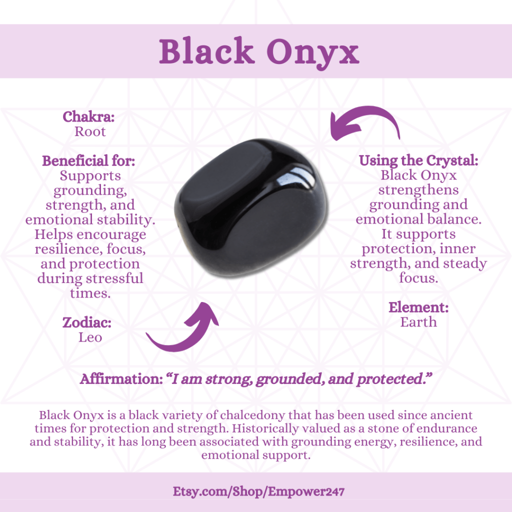 Black Onyx feels empowering without being aggressive. It reminds you that strength can be calm and controlled.